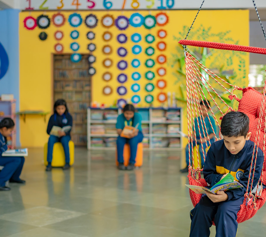 Reading corners have been created in every classroom to instil a sense of reading for students. QR codes shall now be given to all the books so that parents can keep a track of the books their wards are currently interested to read.